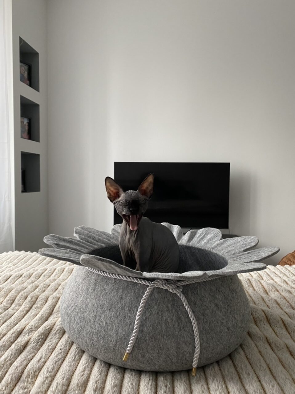 Co mogę powiedzieć o ich charakterach? Doświadczenie z tą konkretną rasą mam od paru lat. Obecnie mam dwie kotki, Leję i Furię. Są cudowne i właśnie to mnie w nich urzekło. Wiadomo, każdy kot jest inny, jednak wszystkie sfinksy łączy to, że nie chodzą własnymi ścieżkami jak inne koty. Są bardzo związane z człowiekiem i najchętniej robiłyby z nim wszystko. Moje uwielbiają pomagać przy sprzątaniu i kontrolować każdy centymetr czy aby na pewno jest dokładnie, są niesamowitymi miziakami. Co wieczór Leja urządza koncert mruczenia przed spaniem. Furia, gdy do nas trafiła, otrzymała imię pasujące do jej zachowania. Aktualnie to imię totalnie nie odpowiada jej charakterowi. Furia jest najspokojniejszym kotem na świecie, z którym miałam do czynienia. Myślę, że olbrzymim wkładem w zmianę jej zachowania było moje zaangażowanie w temat kociego behawioryzmu. Przestudiowałam chyba większość możliwych dostępnych książek i forów internetowych na ten temat i nadal bardzo mnie on fascynuje. Leja i Furia są pełnowartościowymi członkiniami mojej rodziny. Bardzo ważne jest dla mnie aby koty miały stworzone odpowiednie warunki. Przy tak aktywnych kotach bardzo fajnie sprawdzają się wysokie drapaki w różnych kształtach i z możliwościami drapania pod różnymi kątami. Warto też zorganizować swoim pupilom „kociostradę”.