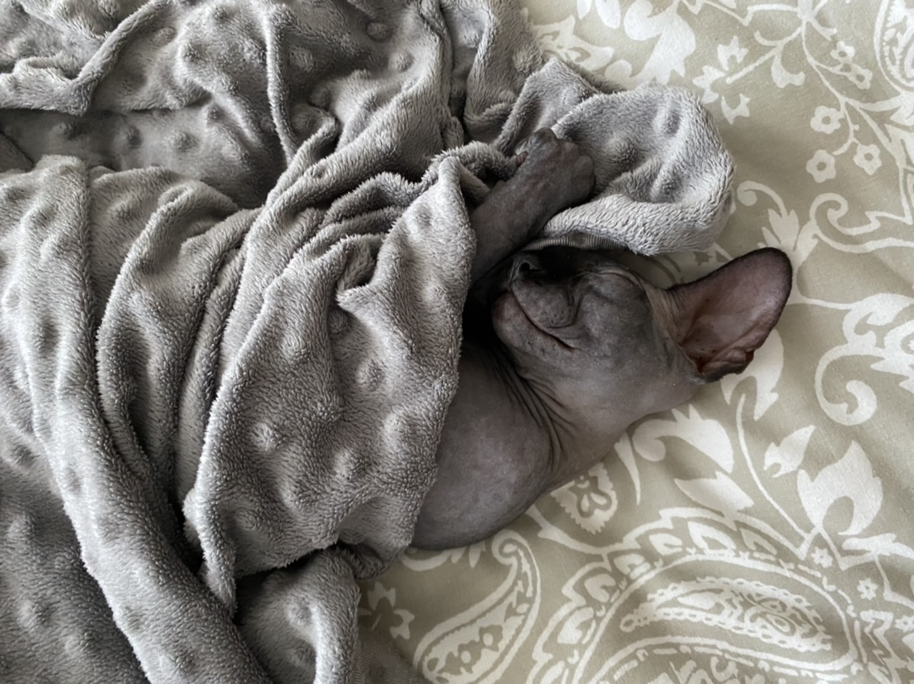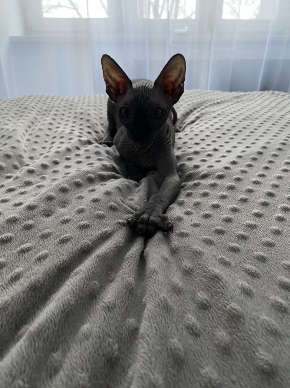 Sfinksy słyną ze swojego energicznego charakteru. Kotki uwielbiają się bawić wszystkimi możliwymi zabawkami, dlatego u mnie mają dostępny ich pełen wachlarz. Aktualnie jednak prym wiedzie laser i gonitwa po całym domu. Ponieważ kotki są dwie, bawią się wspólnie i często urządzają sobie wyścigi. Ich ulubionym zajęciem jest też wylegiwanie się na parapecie i monitoring wszystkiego dookoła – to latem, zimą natomiast najlepszą miejscówką są grzejniki. Wysokie drapaki w przypadku posiadania sfinksów, ale innych kotów również, są pozycją obowiązkową na liście zakupów. Koty uwielbiają się po nich wspinać, skakać, mogą też w komfortowej pozycji rozciągnąć się i naostrzyć pazurki. Pozycją must have przy sfinksach jest również zapas kocyków, w których będą się wylegiwać. Co ciekawe, niektóre sfinksy potrafią też aportować! Są to inteligentne zwierzęta w związku z tym sprawdzają się u nich również bardziej inteligentne zabawki lub nawet gry na telefonie.